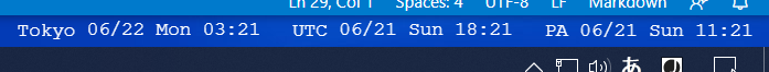 東京とUTCをデフォルトにしていたのだけど、New York と London に変えた。あと、表示がコンパクトな方がウケるみたいなので曜日を表示しないようにした。もちろんこのへんは自由にカスタマイズできる。